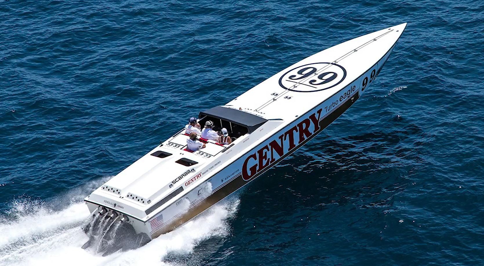 The 1985 Gentry Turbo Eagle was originally built to compete in the demanding Miami to New York Endurance Race. In 1988, it achieved legendary status by winning the APBA Superboat Class World Championship, driven by none other than actor and racer Don Johnson, Bill Sirois (Throttles) and Gus Anastasi (Navigator). A decade later, in 1998, following the passing of its namesake and original owner Tom Gentry, the boat was purchased by two individuals who intended to convert it to a triple-diesel setup. However, the conversion was never completed, and the vessel ended up sitting in storage at a marina in Georgia for the next 18 years.